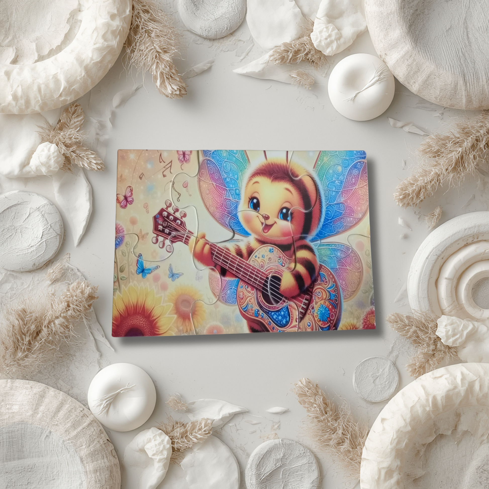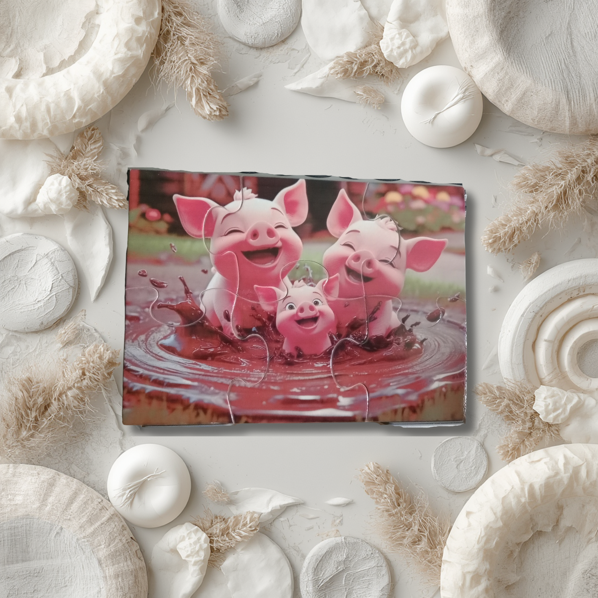 Puzzle enfant de 6 pièces aux illustrations douces et amusantes (petit cochon et abeille joyeuse). Spécialement conçu pour les tout-petits, il favorise l’éveil, la motricité fine et la coordination tout en douceur. Facile à manipuler, ce puzzle est idéal pour une première approche du jeu éducatif.